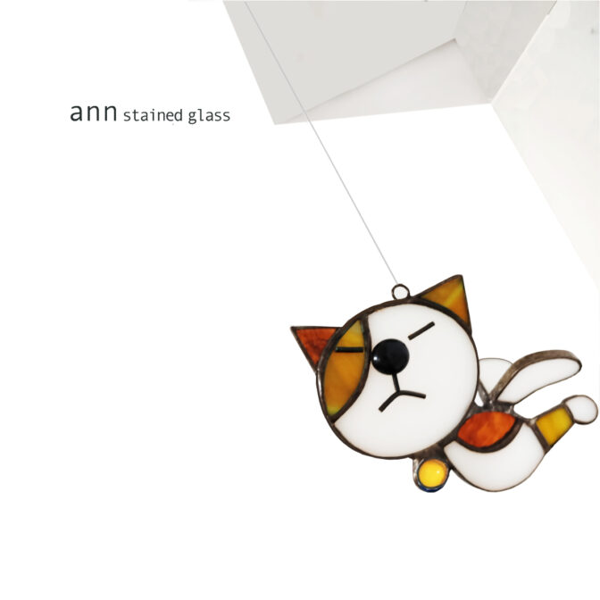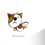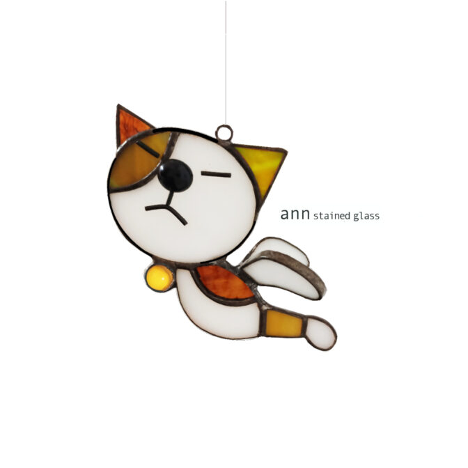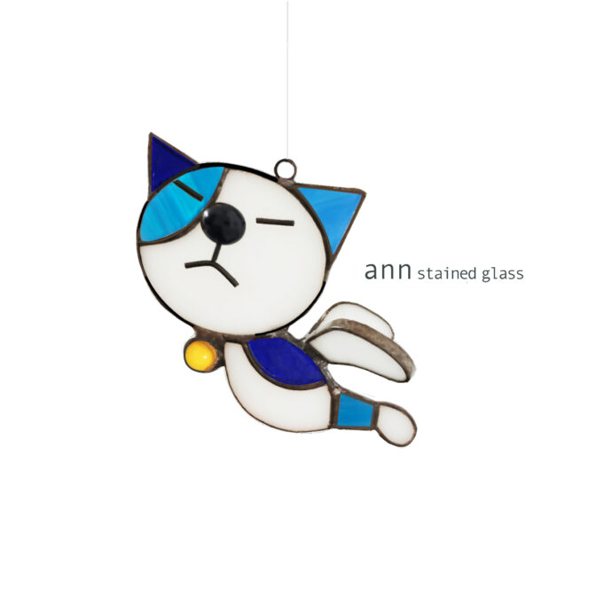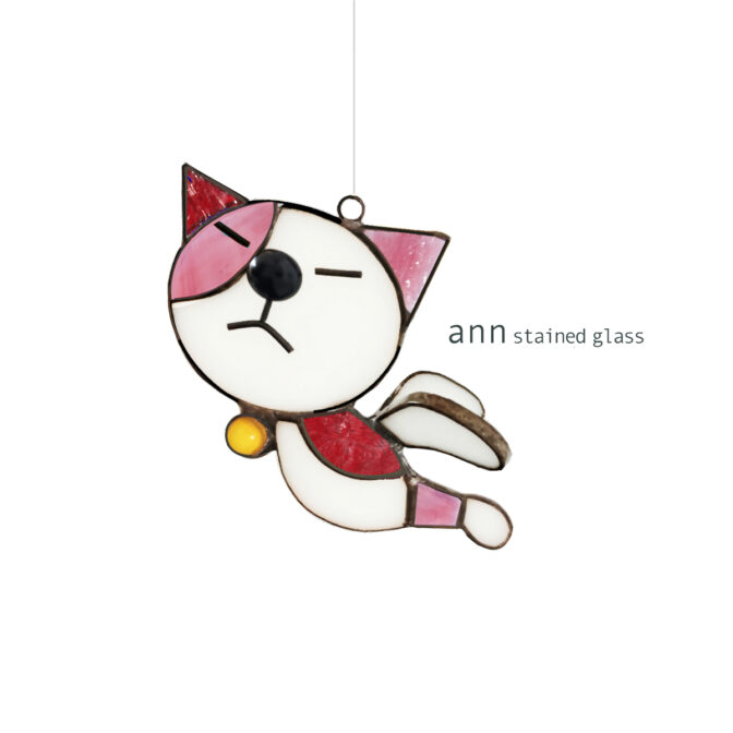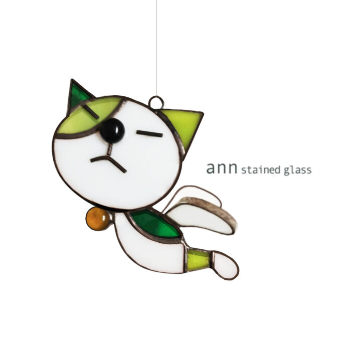 ステンドグラスランプ 飛ぶ猫サンキャッチャー